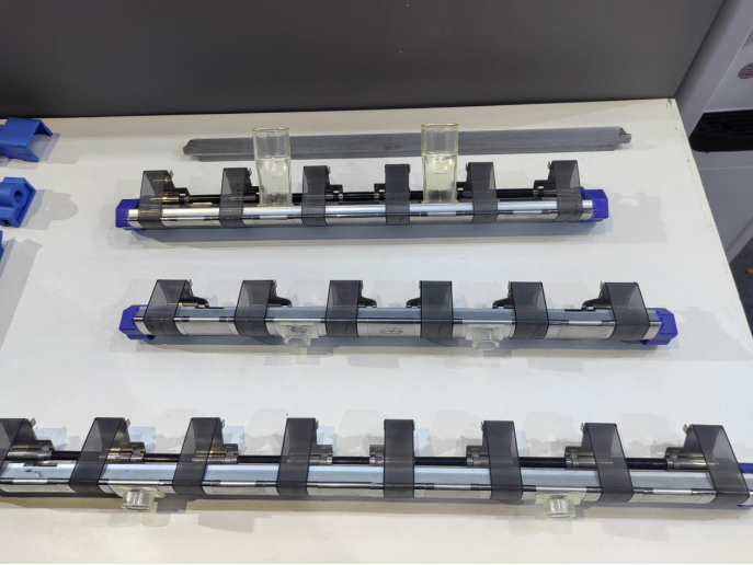 气动加压揺架特点: 1.加压稳定,没有弹簧疲劳的缺陷,使用寿命长; 2.调压方便,可在设备运转过程中实现无级调压; 3.改变皮辊直径后可直接通过调节气压大小控制罗拉加压,操作方便; 4.改变罗拉隔距后可实现有级调压,调整前中后罗拉压力分配; 5.对皮辊直径要求小,节省皮辊消耗; 6.停车时可实现半释压,揺架不必撅起,皮辊不变形,再开车断头率低; 7.揺架平行度好,锭间差异小,更适合紧密纺使用; 8.产品适纺性广,可配高效工艺; 9.吸振性能好,适应机器高速运转,成纱质量好; 10.结构简单,拆装方便,便于维护保养; 11.裕华揺架采用宝钢或鞍钢板材,军工技术保证,质量可靠。预设有紧密纺改造,包芯纱改造或粗纱自停装置改造接口。